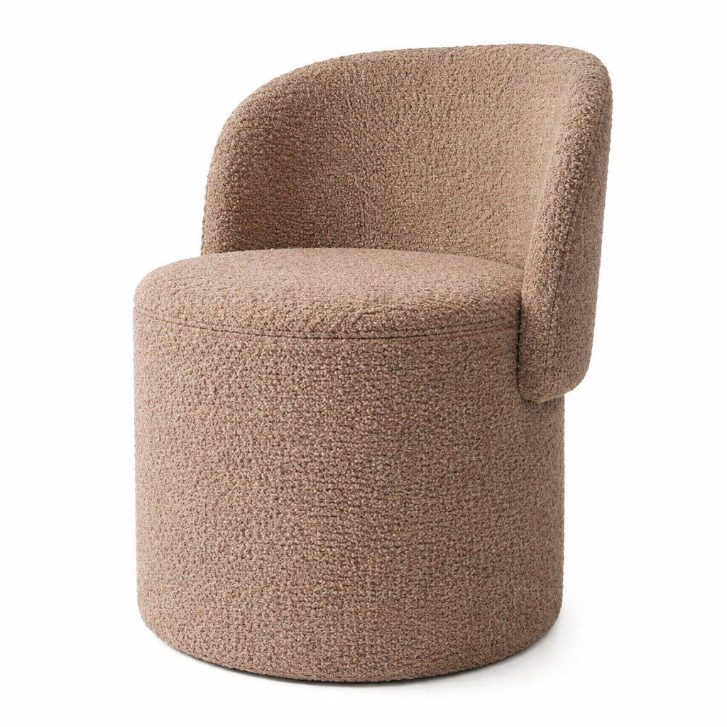 Boucle Round Swivel Vanity Stool Accent Chair with Back