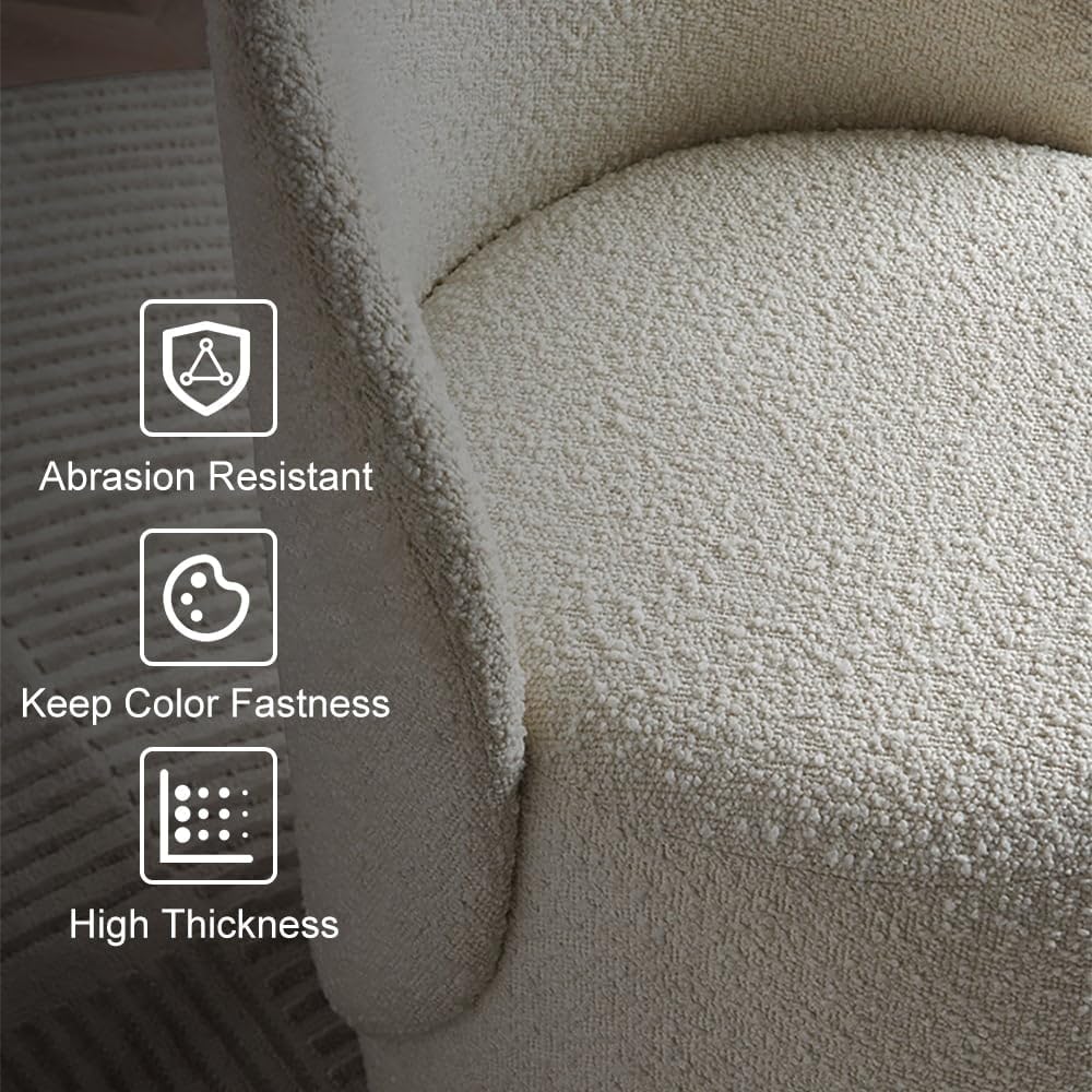 Premium beige boucle fabric offers a chic textured look with a cozy, soft-to-touch feel