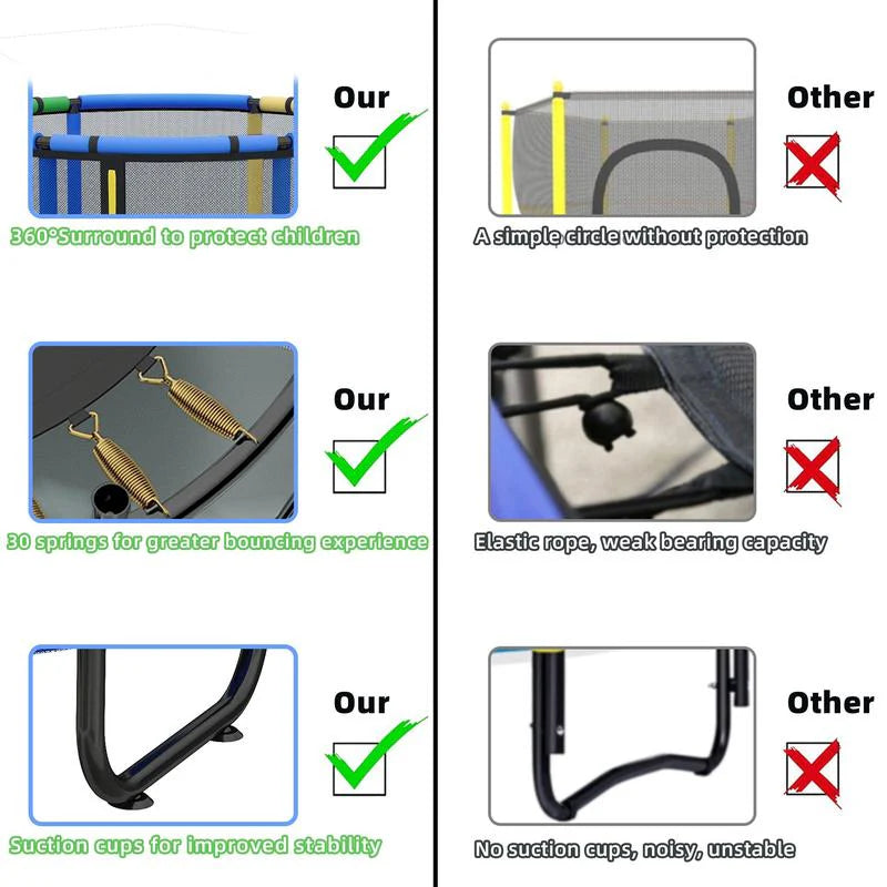When it comes to your child’s play, safety is non-negotiable. That's why our trampoline isn't just fun—it's engineered with superior protection so you can relax while they play.