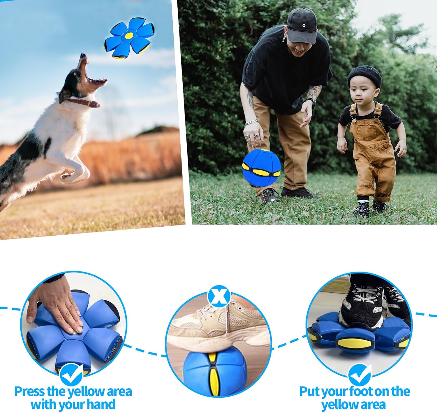 A 2-in-1 light-up toy that presses into a flying saucer and springs back into a ball—made for giggles, movement, and parent-child play. Pets can join the chase, too. (Not a chew toy.)
